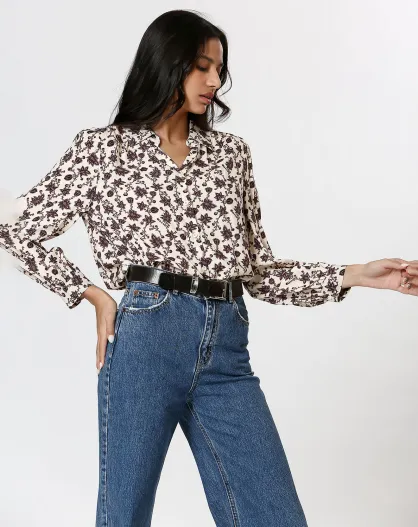 Chemise manches longues à Fleurs beige/écru