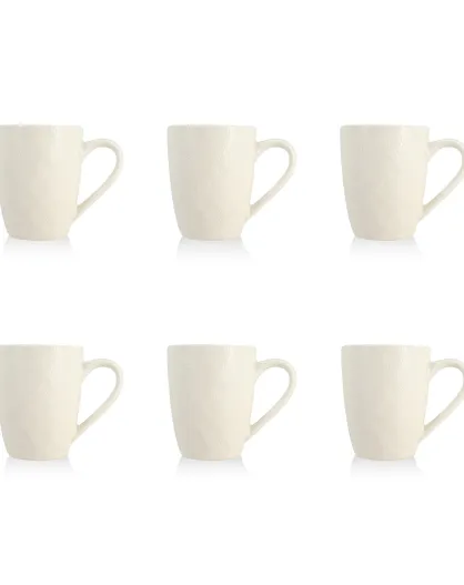 6 Mugs en grès Snowstack blanc mat - 33 cl