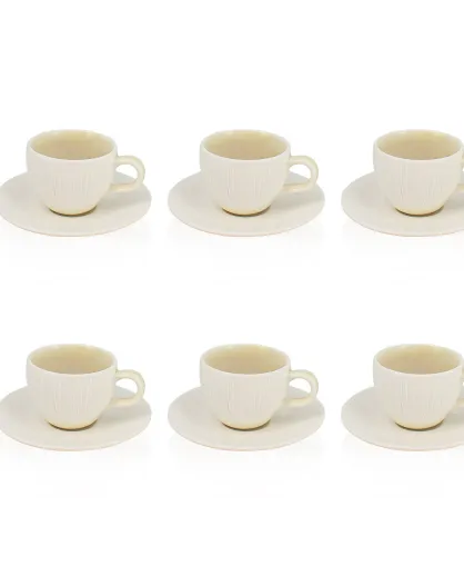 6 Tasses & Soucoupes en Porcelaine Urus beige/blanc - 12 cl