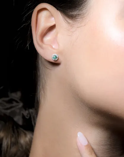 Boucles d'oreilles Kris Diamants 0.08 ct & Emeraudes 0.27 ct or blanc