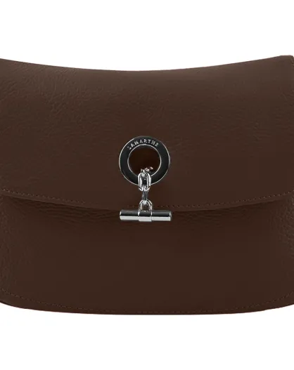 Sac bandoulière en Cuir Paris chocolat - 25x18.5x7.5 cm