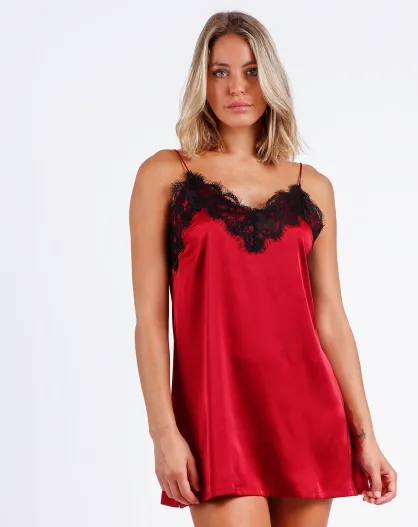Chemise de nuit en dentelle rouge rubis