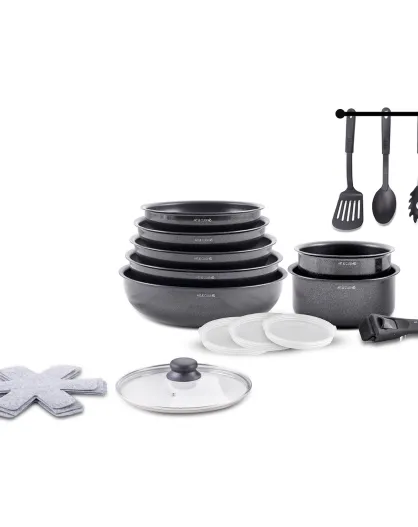 Batterie de cuisine grise - 18 Pièces