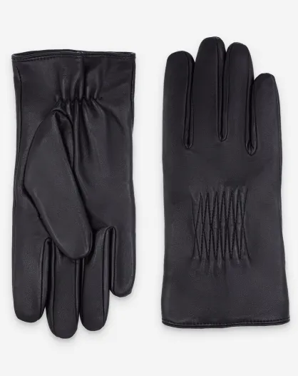 Gants en cuir à doublure en laine Isidore noirs