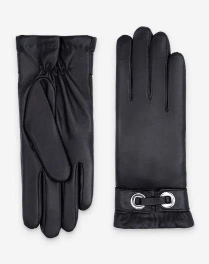 Gants en cuir d’agneau doublure cachemire Alex noirs