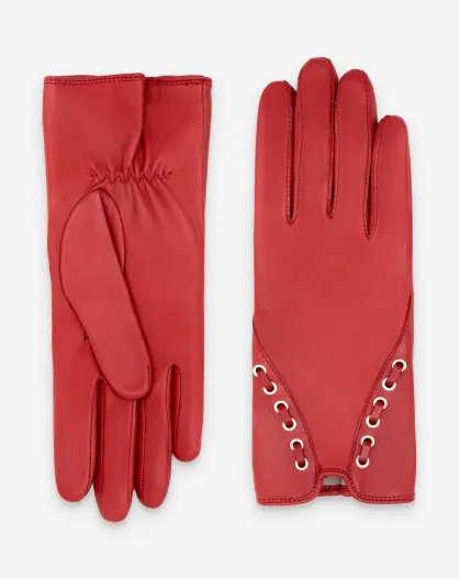Gants en cuir d’agneau doublure laine Anaïs rouges