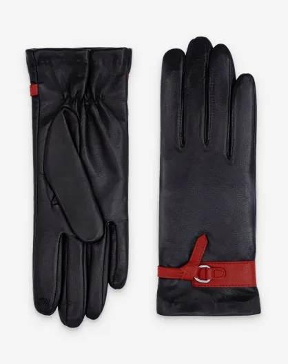 Gants en cuir doublure soie Adrien noirs-flamme-écarlate