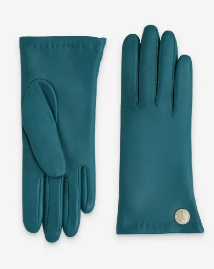 Gants cuir agneau doublure cachemire Charlie bleus sarcelle cristal