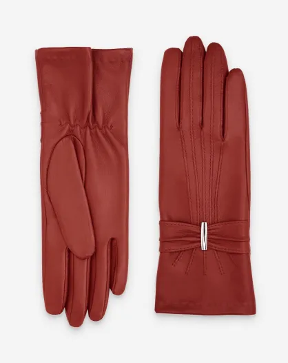 Gants en cuir doublure soie Clément briques