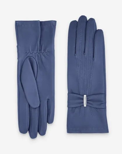 Gants cuir agneau-100% soie-21589SN-bleu-gris