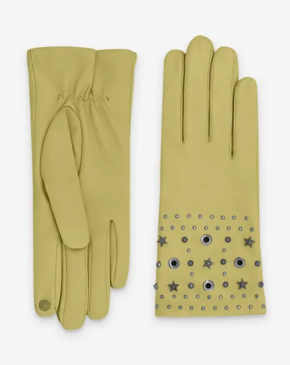 Gants en cuir doublure soie Oriane jaune pâle
