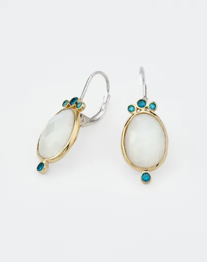 Boucles d'Oreilles Argent et Laiton Leonisse Pierre de Lune Blanche et Oxydes de Zirconium