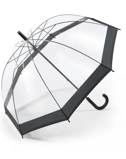 Parapluie de marche long en forme de dôme avec poignée en plastique/courbée transparent