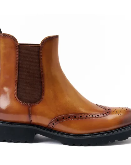 Bottines Chelsea à bout fleuri marron clair
