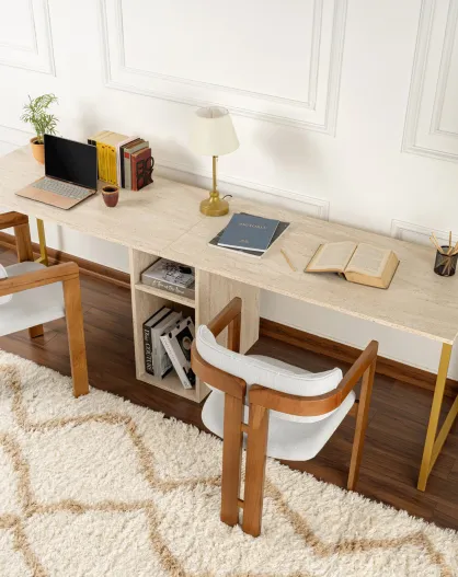 Bureau Twin travertin/doré - 240x74x60 cm