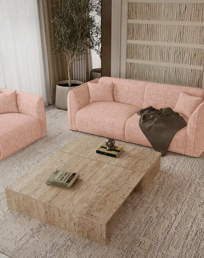 Canapé 4 places convertible LIVA Velours texturé Rose vintage - 240x97x73