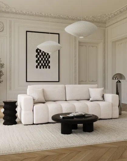 Canapé 4 places COVA Tissu bouclette Crème - 247x94x69.5