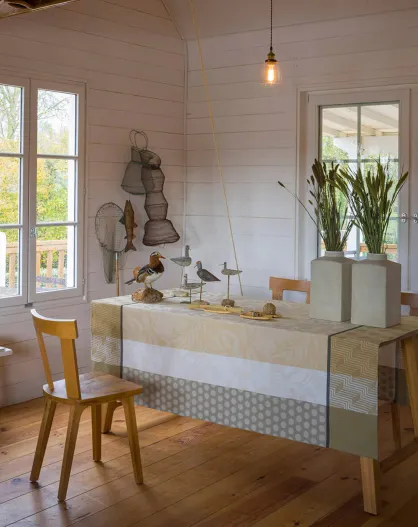 Chemin de table 100% Lin Armoiries grège - 50x150 cm
