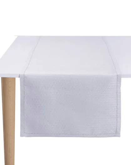 Chemin de table 100% Lin Portofino Géo blanc - 50x150 cm