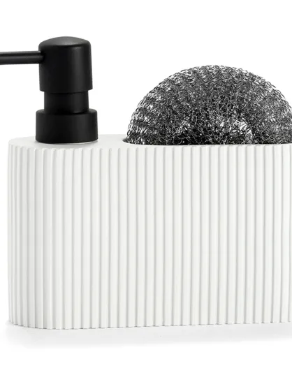 Distributeur de Savon Poly Bl/Nr avec Eponge blanc/noir - 16.5x5.5x15 cm