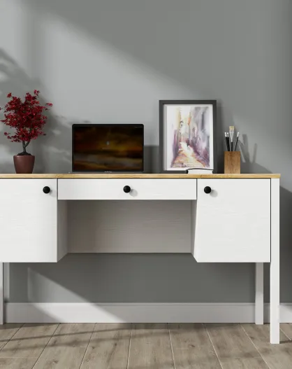 Bureau Domingos blanc/noyer - 120x73.8x61.8 cm