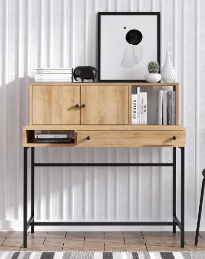 Bureau Vesper blanc/pin - 130x72x50 cm