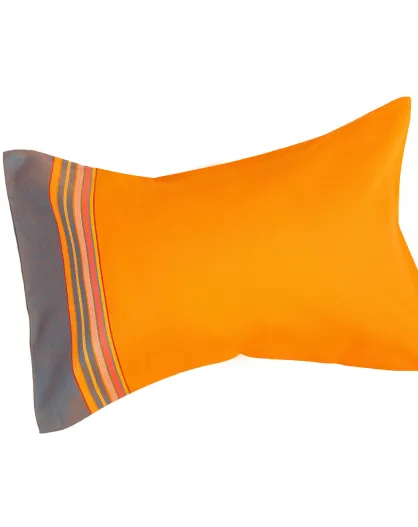 Coussin déhoussable avec franges macramé orange/blanc - D40 cm