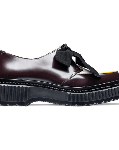 Derbies à Noeud en Cuir de Veau bordeaux/ivoire/jaune