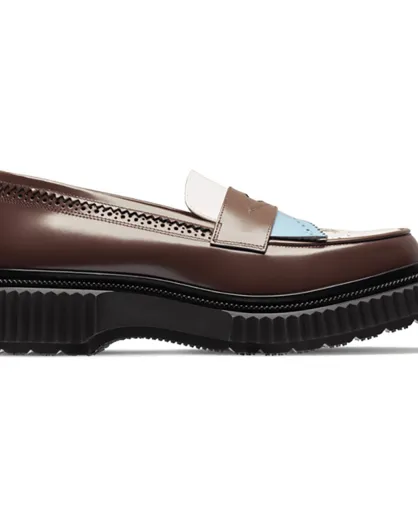 Mocassins en Cuir de Veau terre foncée/ivoire/bleu