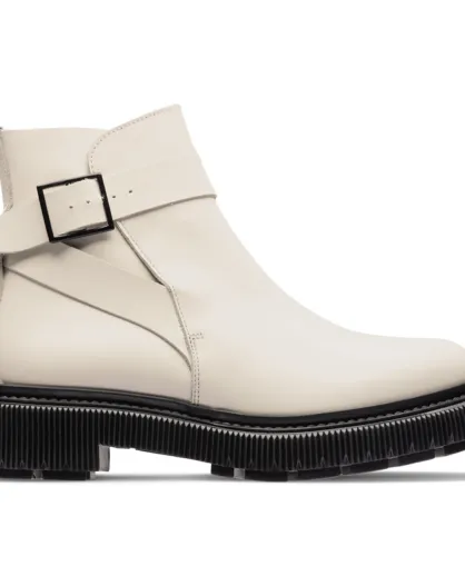 Bottines à Boucle en Cuir de Veau ivoire