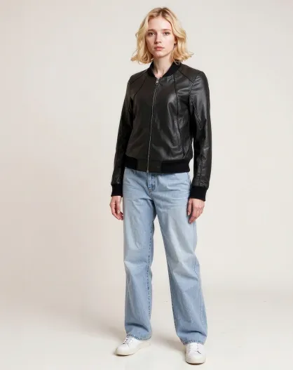 Bombers en Cuir Leffi noir