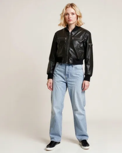 Bombers en Cuir Piera noir