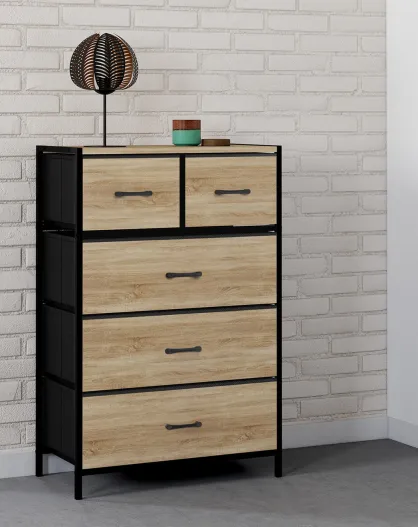 Commode Iris 5 tiroirs bois/noir - 60x30x90 cm