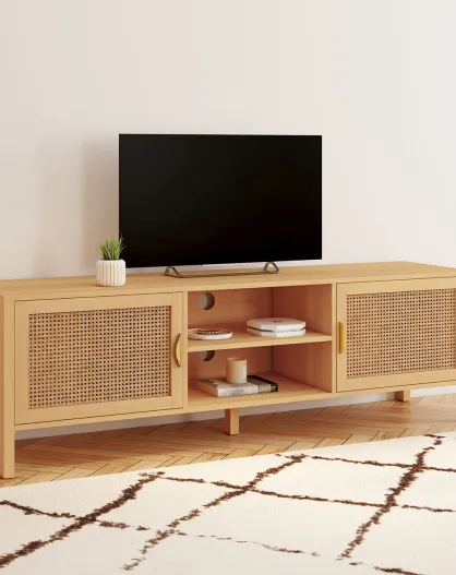 Meuble TV en cannage Eve bois - 160x40x50 cm