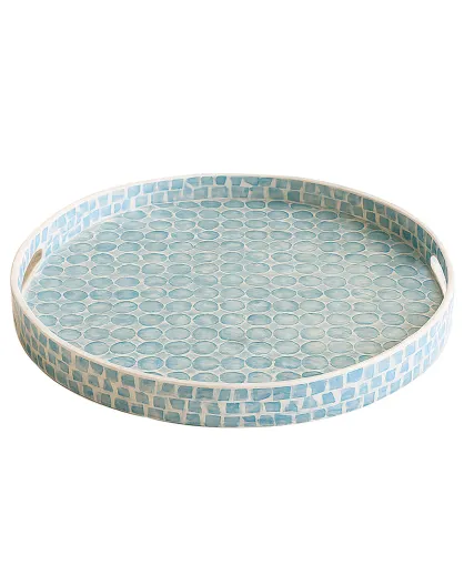 Plateau rond av poignée coquille de nacre solna bleu - D.45x6 cm