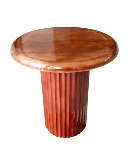 Meuble d'appoint en bois manguier/métal émaillé alta marron - D.40x42 cm