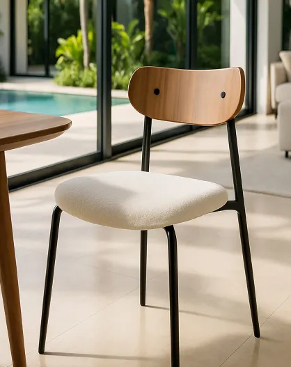 2 Chaises en bouclette bois et métal gaston ecru/naturel/noir