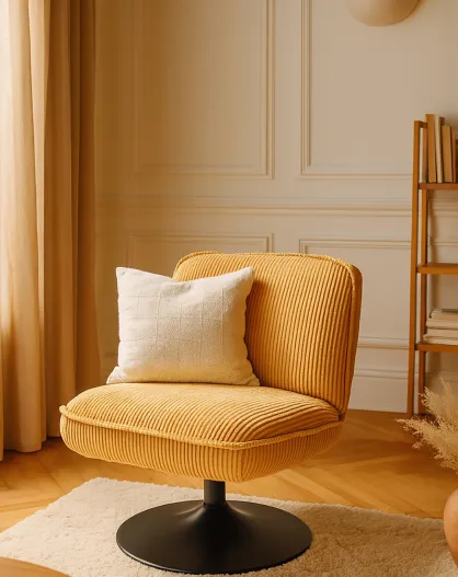 Fauteuil pivotant velour côtelé pied métal funky jaune - 62x74x75 cm