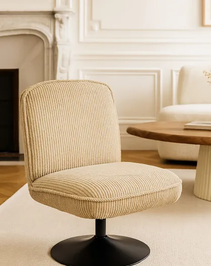 Fauteuil pivotant velour côtelé pied métal funky beige - 62x74x75 cm