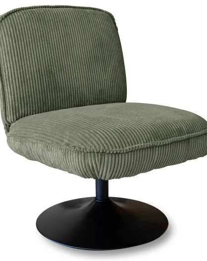 Fauteuil pivotant velour côtelé pied métal funky vert - 62x74x75 cm