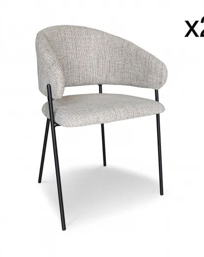 2 Fauteuils + Table tissu tweed pieds metal eros beige/noir