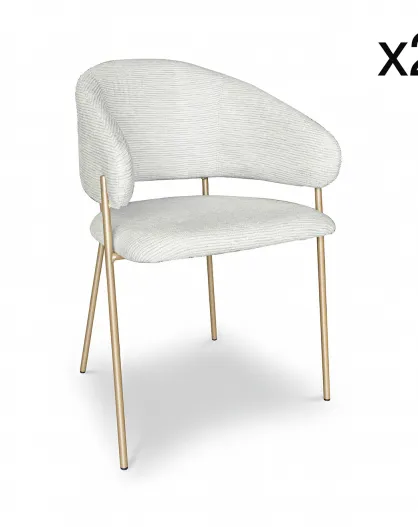 2 Fauteuils + Table tissu tweed pieds metal eros ecru/noir
