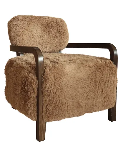 Fauteuil en tissu doux effet mouton pieds bois yack marron - 71x79x77 cm