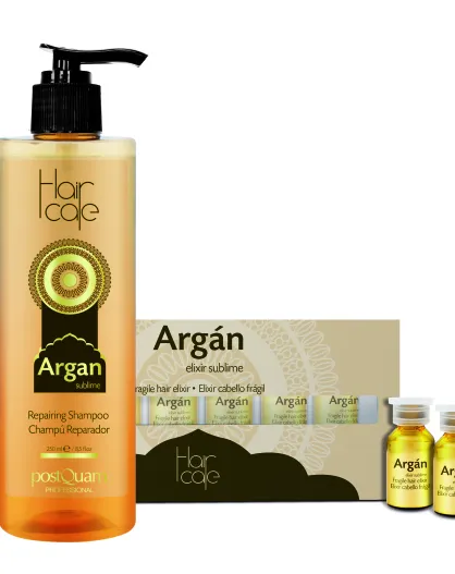 Pack entretien et traitement à l'huile d'argan : huile + shampoing - 225 ml + 6 x 3 ml