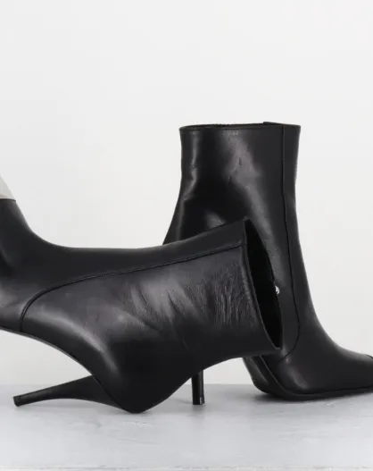 Bottines en Cuir mecha noires - Talon : 9.5cm