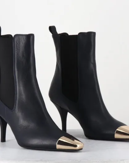 Bottines en Cuir nako bleu marine foncé - Talon : 7.5cm