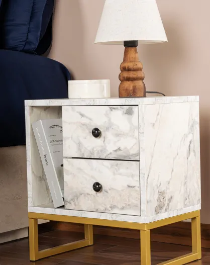 Table de chevet Glimmer marbre freesia/or - 45.2x50x29.5 cm