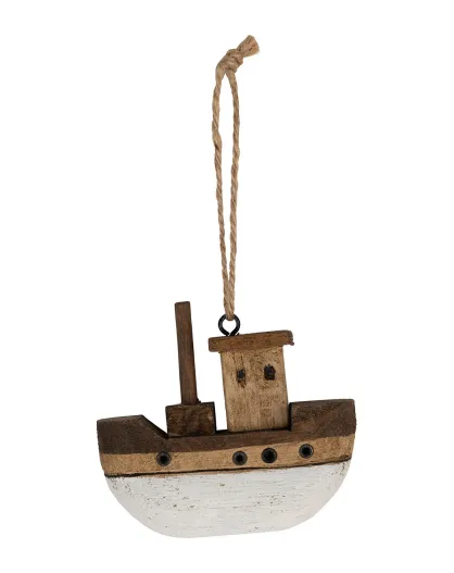 Deco Suspendue Bateau naturel/blanc - 7.5x6.5 cm