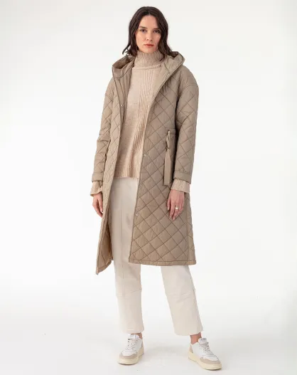 Manteau Lily-Rose long 100% Cachemire ceinture beige chiné