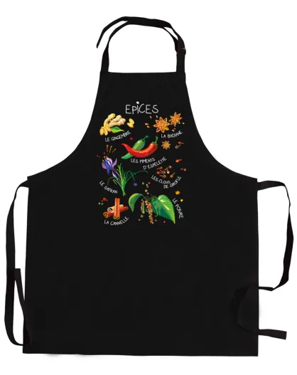 Tablier Sans Poche Epices Recyclé noir - 72x90 cm